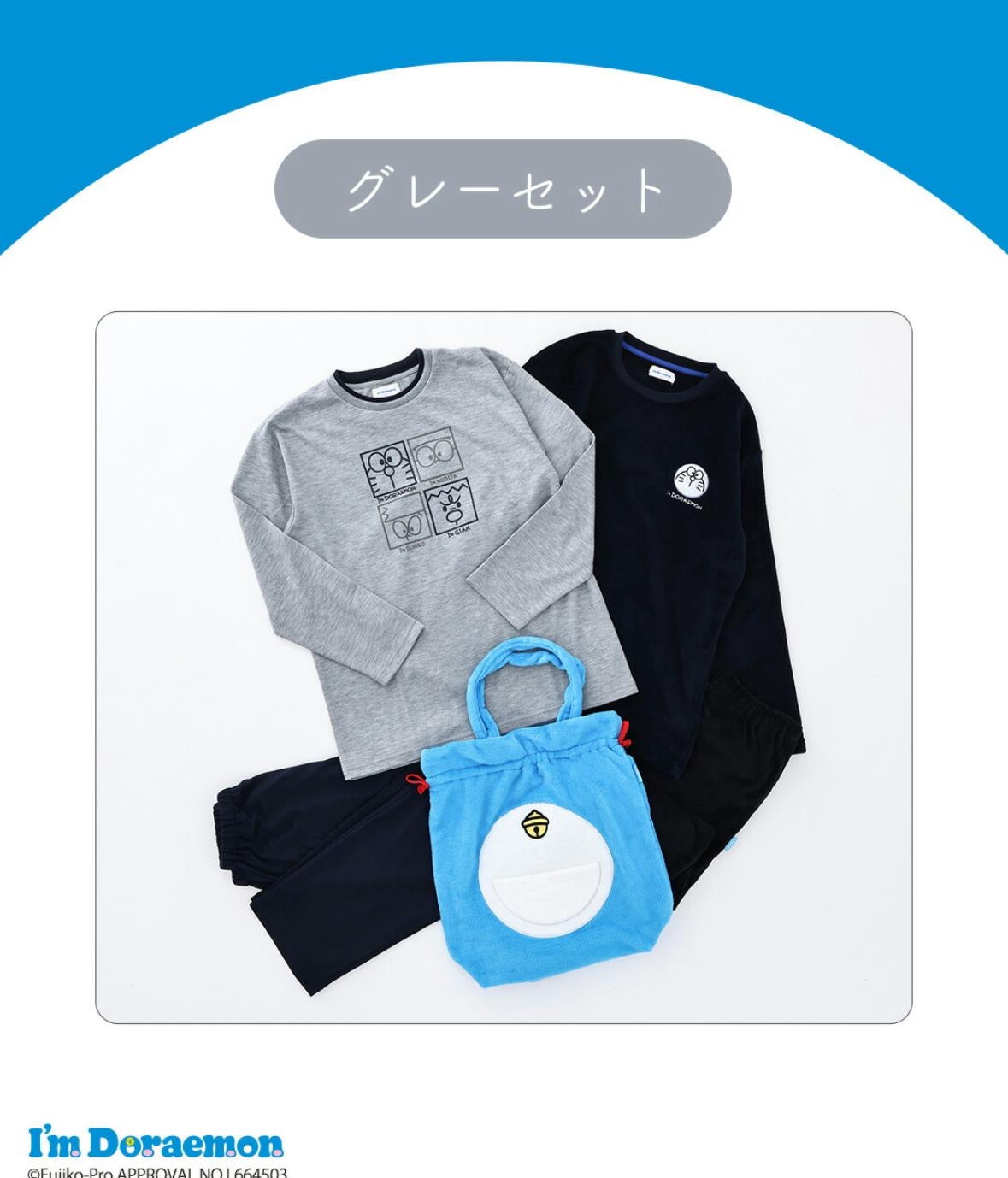 多啦A夢2套睡衣連袋套裝 灰色