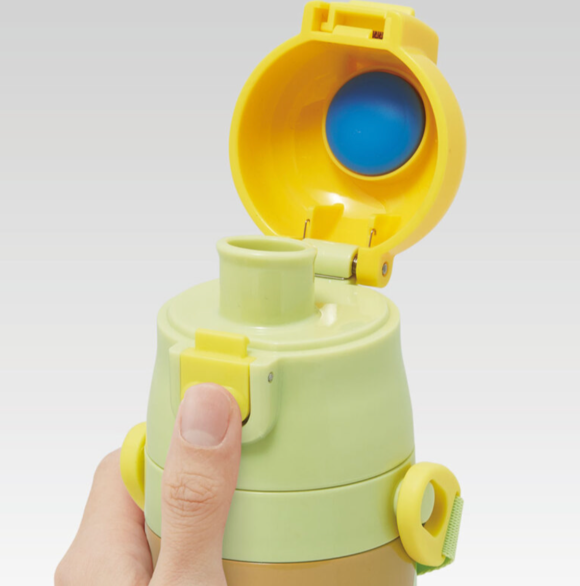 不鏽鋼瓶一推即可打開,讓您隨時飲用。